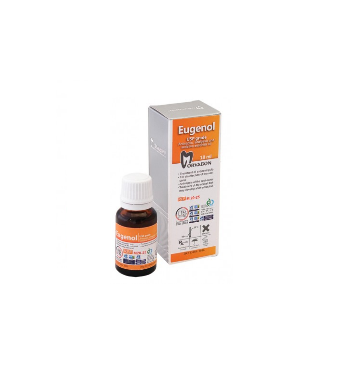 اوژنول eugenol مروابن کاملاً خالص Pure بوده و دارای گرید دارویی USP Grade است. از کاربردهای این محصول ضد عفونی کردن ریشه دندان، التیام بخشی و ضد درد بودن آن است.