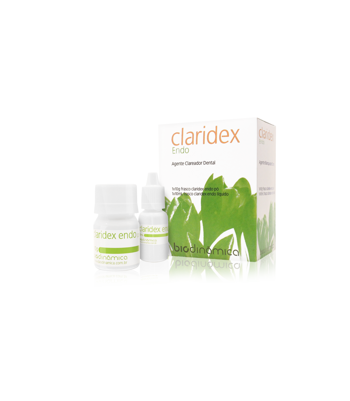 CLARIDEX ENDO یک سیستم سفید کننده بر اساس سدیم پراورات و هیدروژن پراکسید 20٪ برای استفاده حرفه ای است. سدیم پربورات ماده ای پودری است که در تماس با آب در متابورات سدیم ، پراکسید هیدروژن و اکسیژن تجزیه می شود. این ماده در ارتباط با پراکسید هیدروژن برای پاکسازی دندانهایی که حیاتی نیستند استفاده می شود. برای ترمیم دندان پس از سفید شدن ، توصیه می شود 7 تا 15 روز صبر کنید ، زیرا در این فاصله تثبیت رنگ نهایی رخ می دهد و همچنین هر اثری از مشتقات اکسیژن را از بین می برد ، که در پلیمریزاسیون سیستم های چسب و رزین های کامپوزیتی که در ترمیم استفاده می شود ، دخالت می کند.