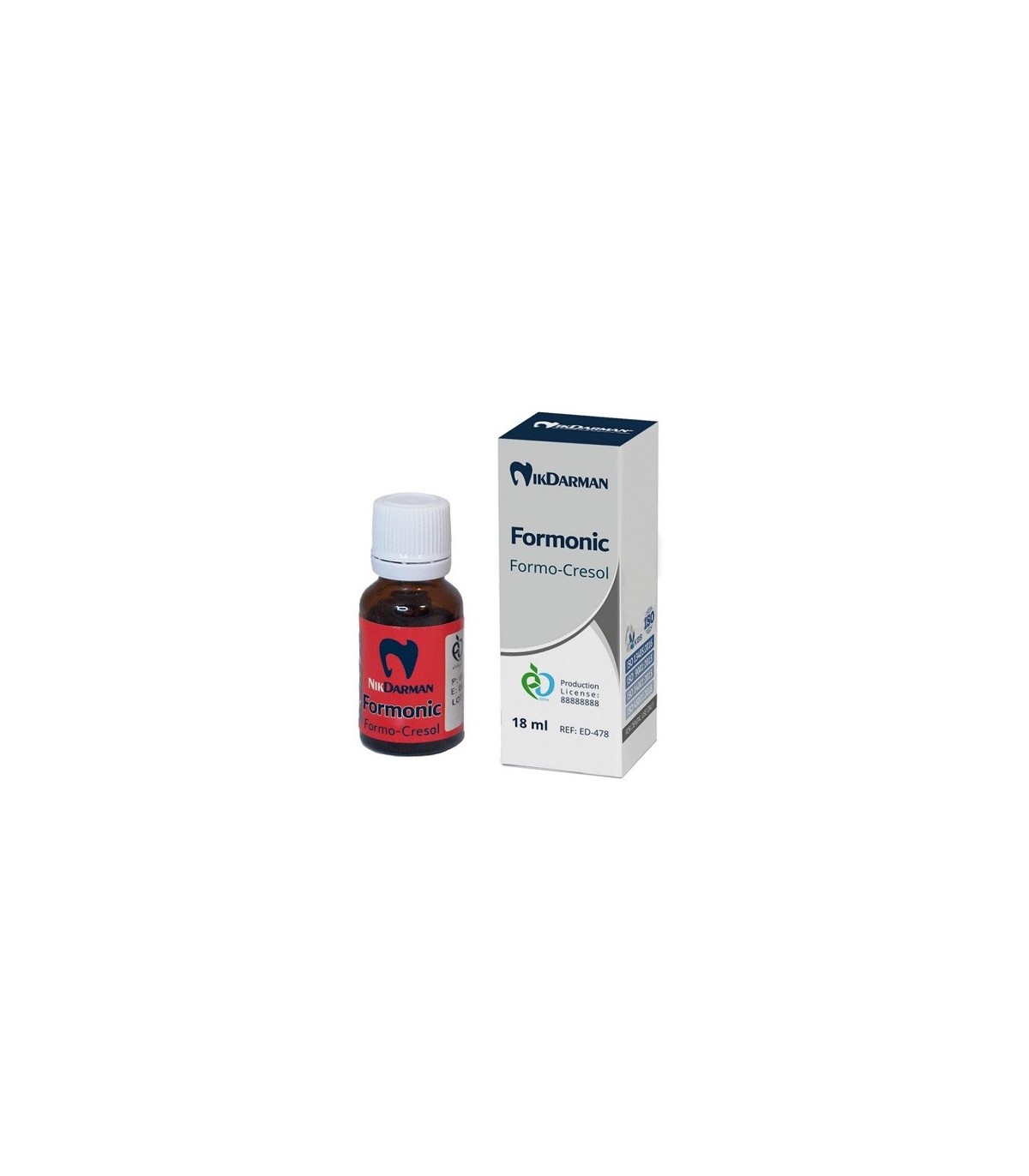 محلول فرموکرزول اطفال نیک درمان – Nik Darman Formanic : فرموکرزول ترکیبی ضد عفونی کننده است که از قریب ۸۰ سال پیش در دندانپزشکی استفاده می شود. این دارو برای پالپوتومی وایتال دندانهای شیری کودکان و به عنوان داروی داخل کانالی موقت در طی درمان ریشه مورد مصرف قرار می گیرد. فرموکرزول علاوه بر محافظت و استحکام پالپ دندان، با قدرت ضد عفونی کنندگی بالای خود، باعث از بین رفتن میکروارگانیسم های هوازی و بی هوازی در ریشه دندان می شود .